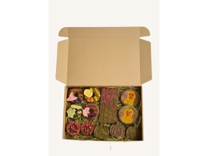 🎂 Vyrobený z kořene pampelišky, voňavého sena, bylinek, zeleniny a jen špetky ovesných vloček – aby potěšil, ale nezatížil.