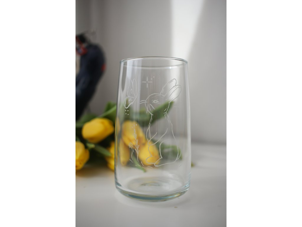 Ručně broušená sklenička s motivem králíčka. Každý kousek je originál, broušený ručně s láskou❤️