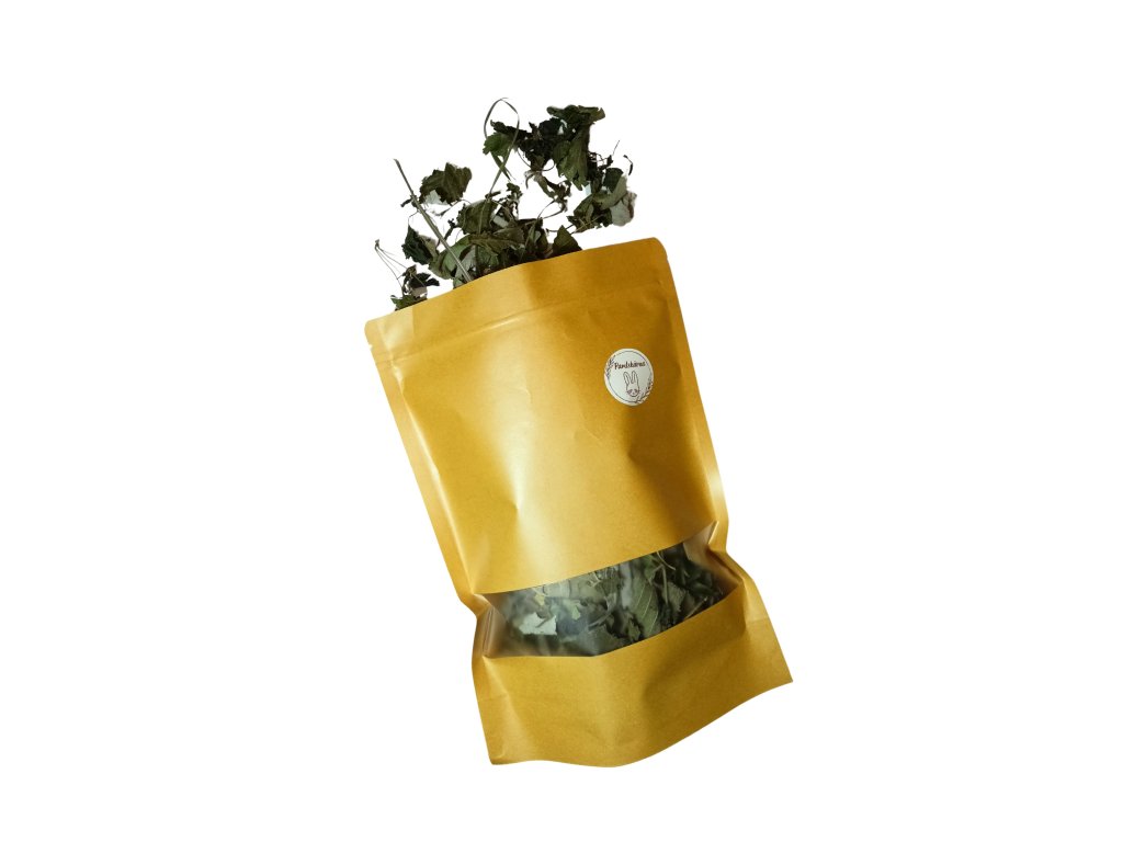 Bylinná směs kombinuje pečlivě vybrané listy a bylinky, které podporují zdravé okusování, trávení a péči o zuby. Každá složka je 100 % přírodní a ručně sbíraná, aby byla bezpečná a chutná pro vašeho králíka či hlodavce.